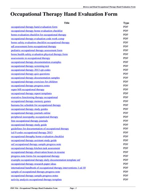 Download Link occupational therapy hand evaluation form Epub PDF